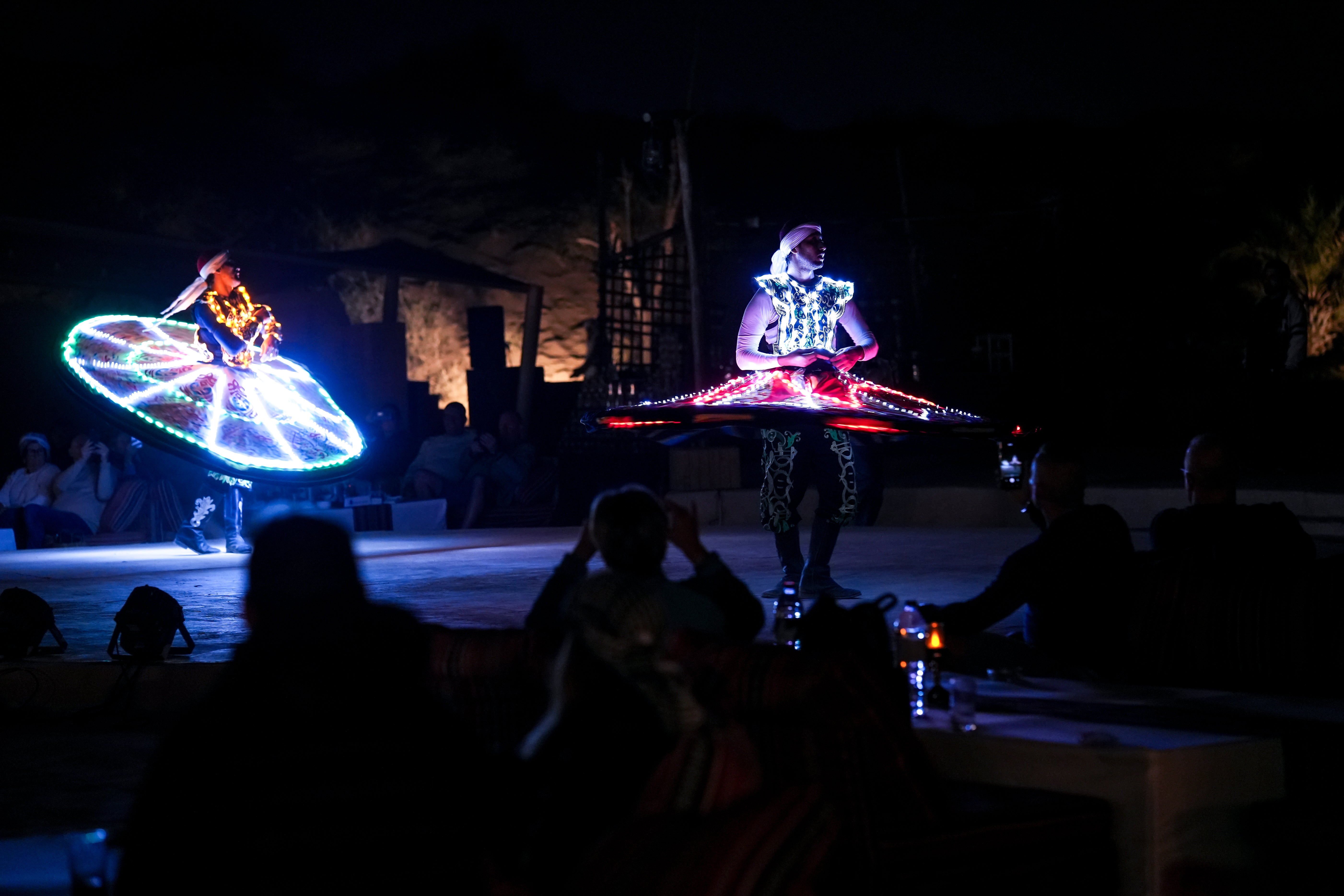 - Live Entertainment: Soft Sufi whirling, Tanoura show, fire show, enchanting belly dance